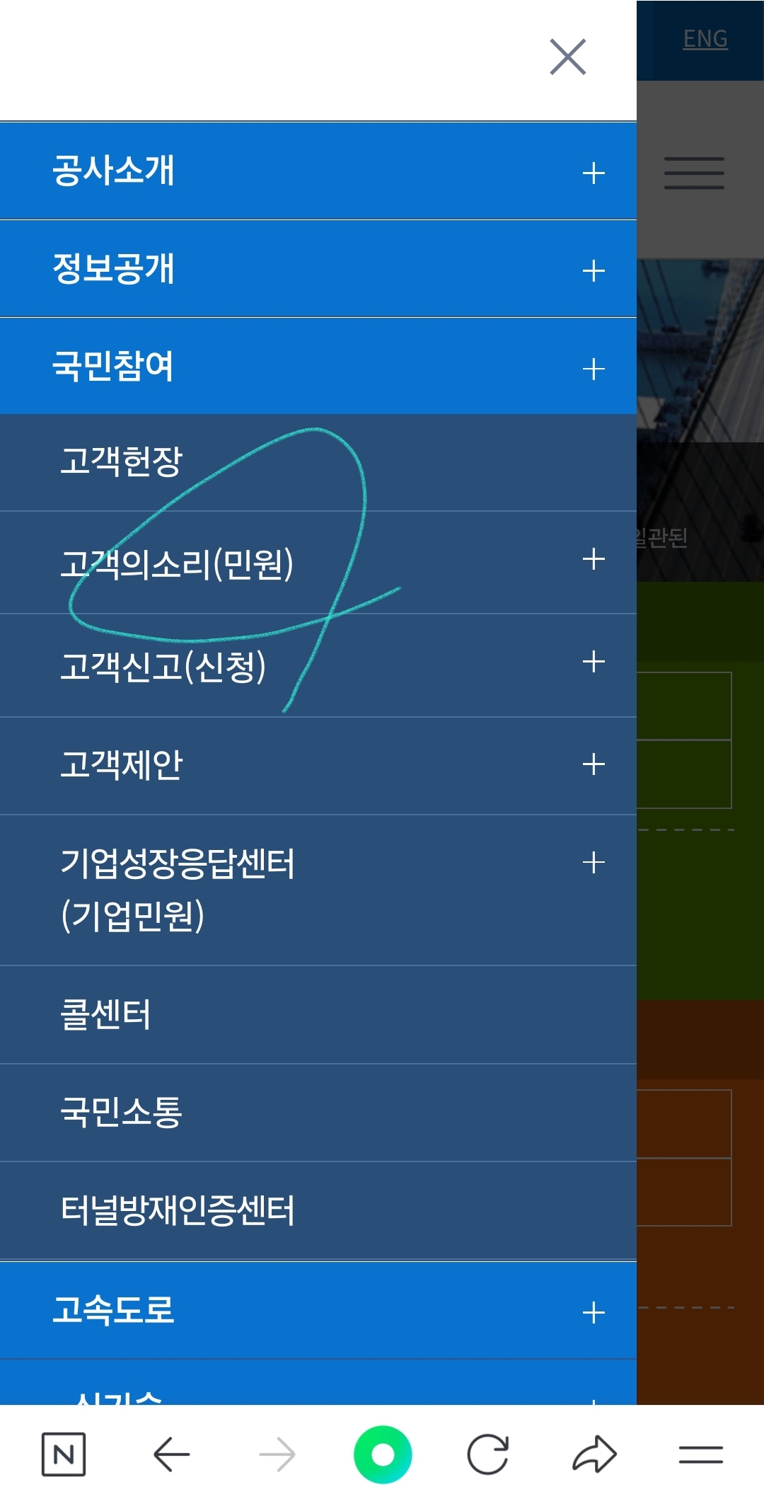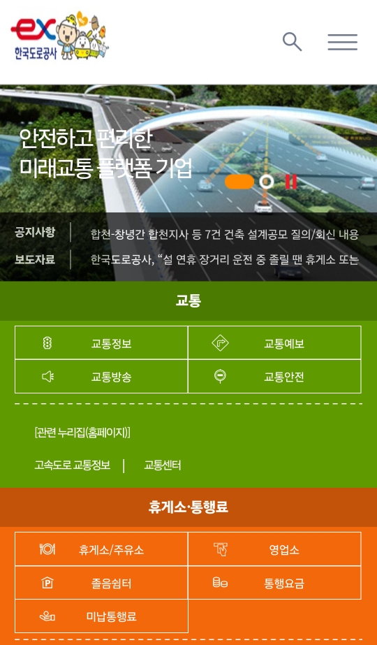한국도로공사 홈페이지에 접속합니다.