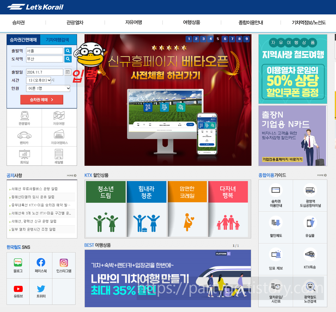 #### 1. **코레일 웹사이트에서 예매하기**